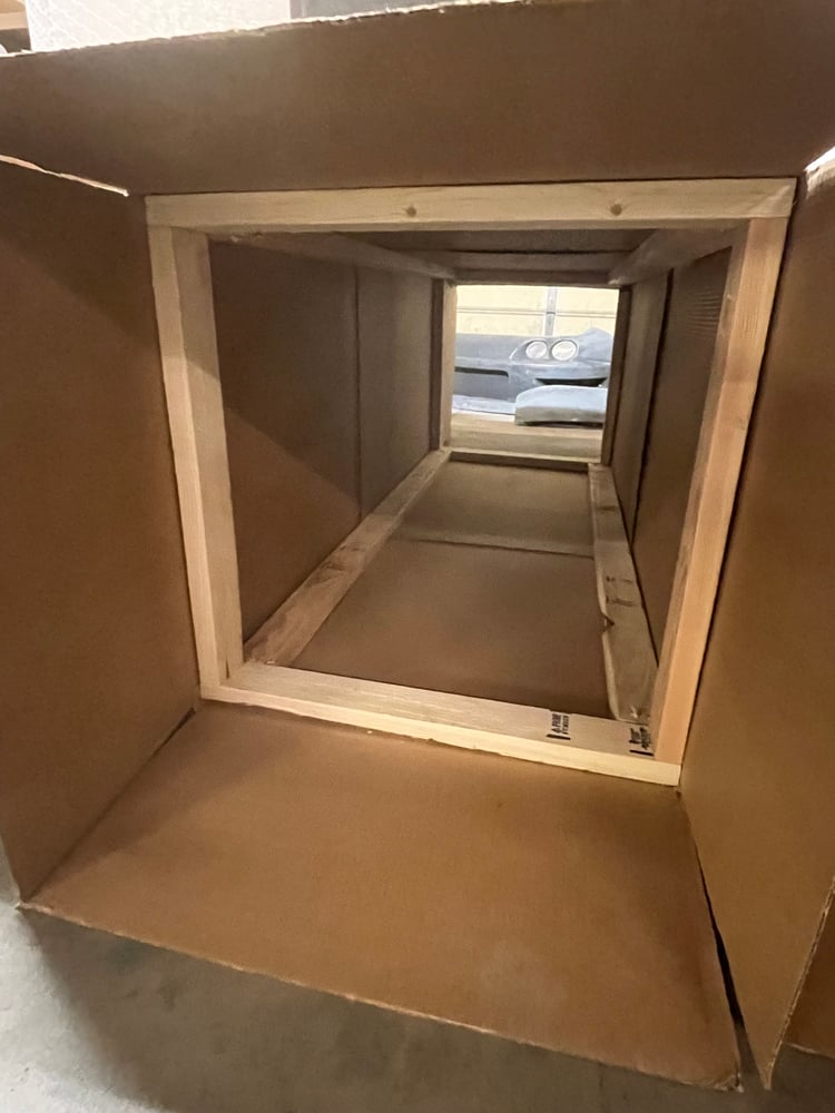 - Placed into a hand-built wooden crate